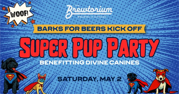 Join us and Divine Canines as we kick off Barks for Beers month at our SUPER PUP PARTY! Super Pup Parade & Super Paw-er Trick Contest!